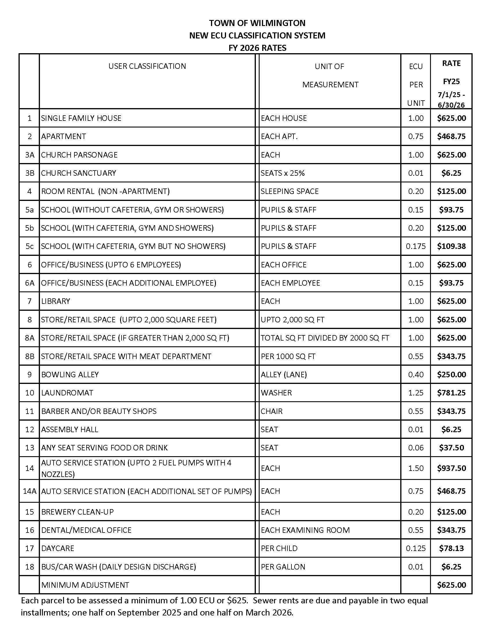 FY 2026 SEWER RATE (7/1/2025 – 6/30/2026)